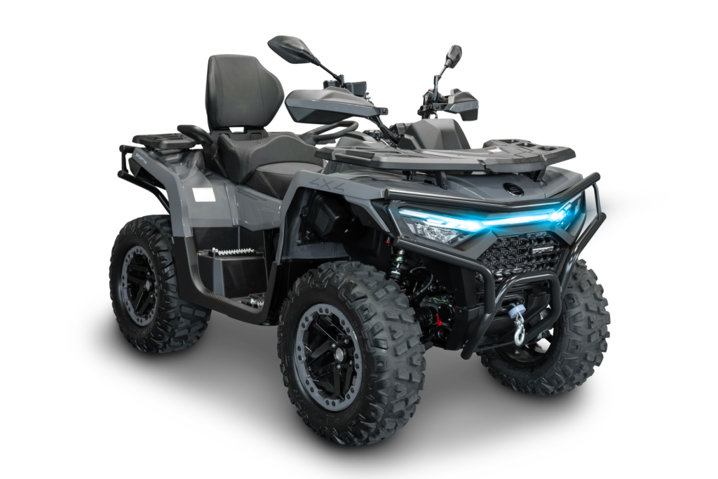 SPORTIVA 1000 DUALE GT ATV in Matt Forest Grün, Frontansicht studio, 14 Zoll Beadlock-Felgen, massiver Frontbumper mit Seilwinde und LED-Scheinwerfer.