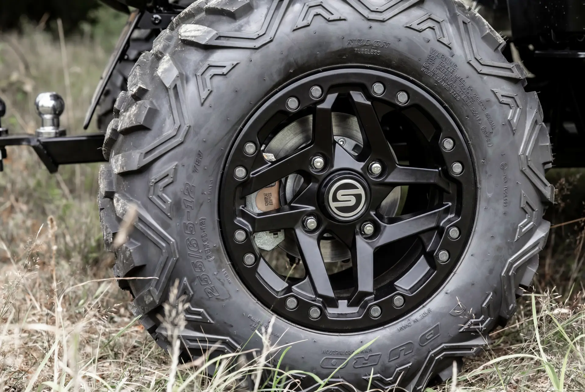Die 520 GT rollt auf stabilen 12-Zoll-Alufelgen mit kräftigem Profil – ideal für unebenes Terrain, Forstwege oder steile Zufahrten. Die Kombination aus Optik und Funktion sorgt für sicheres Fahrverhalten und einen markanten Auftritt.