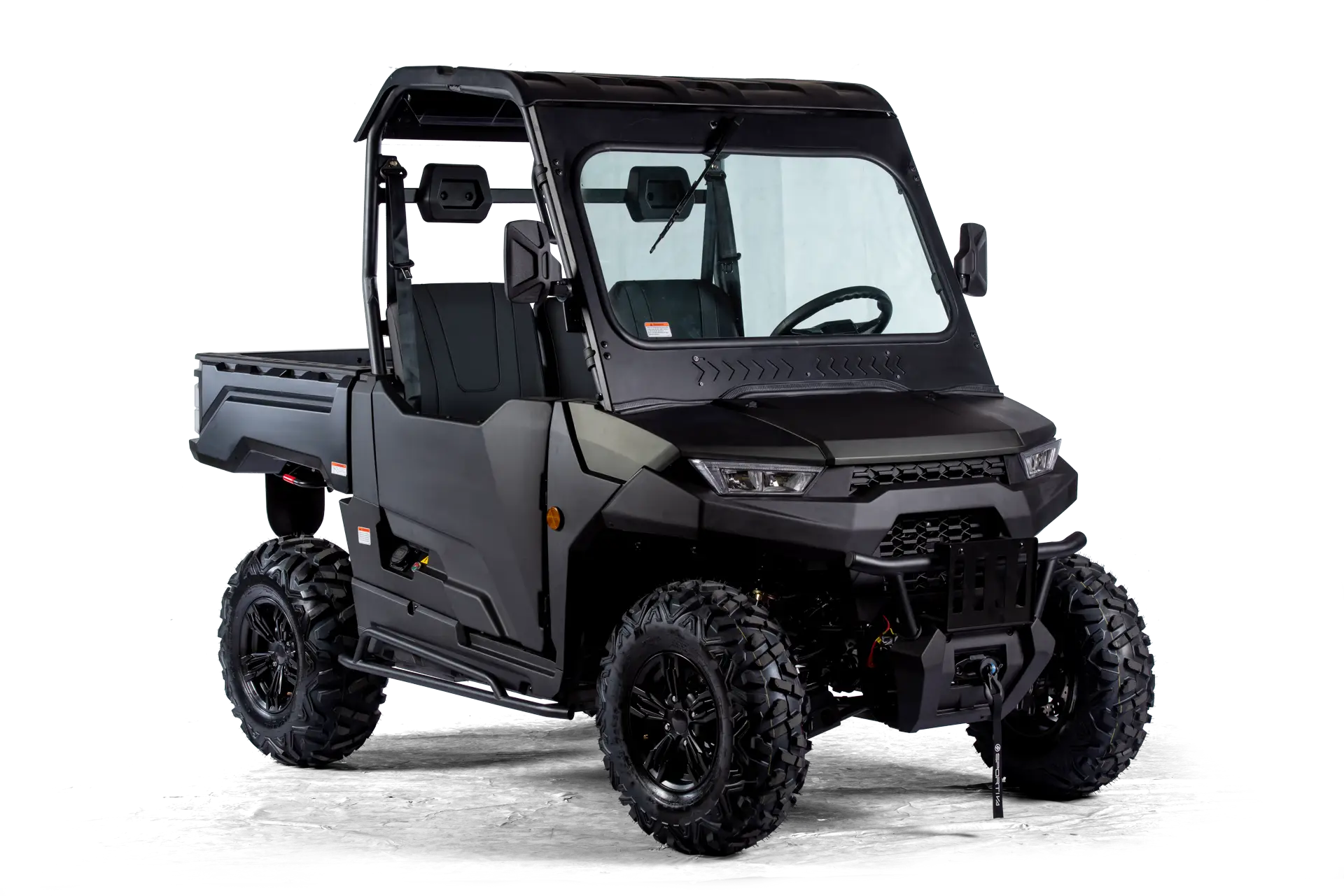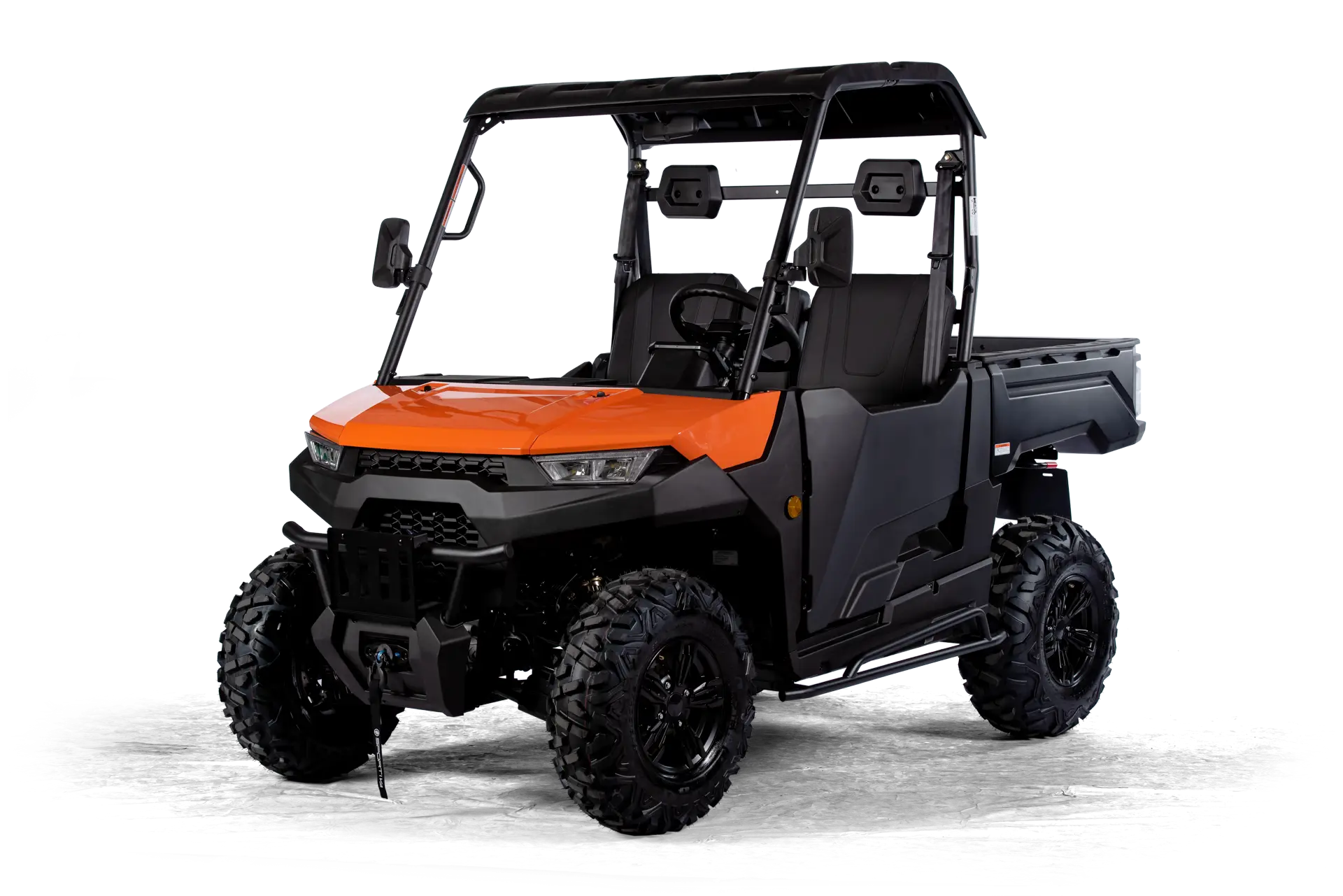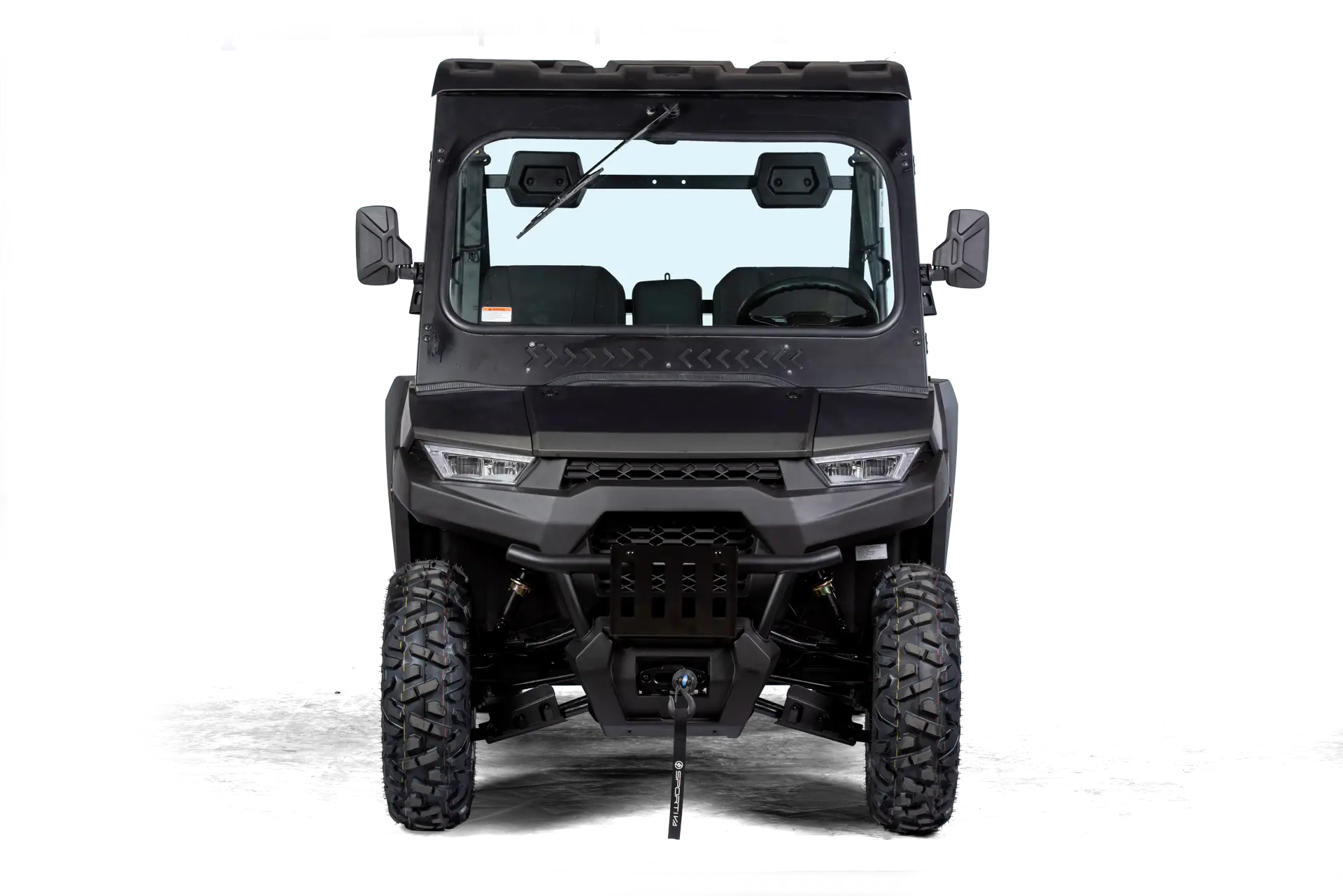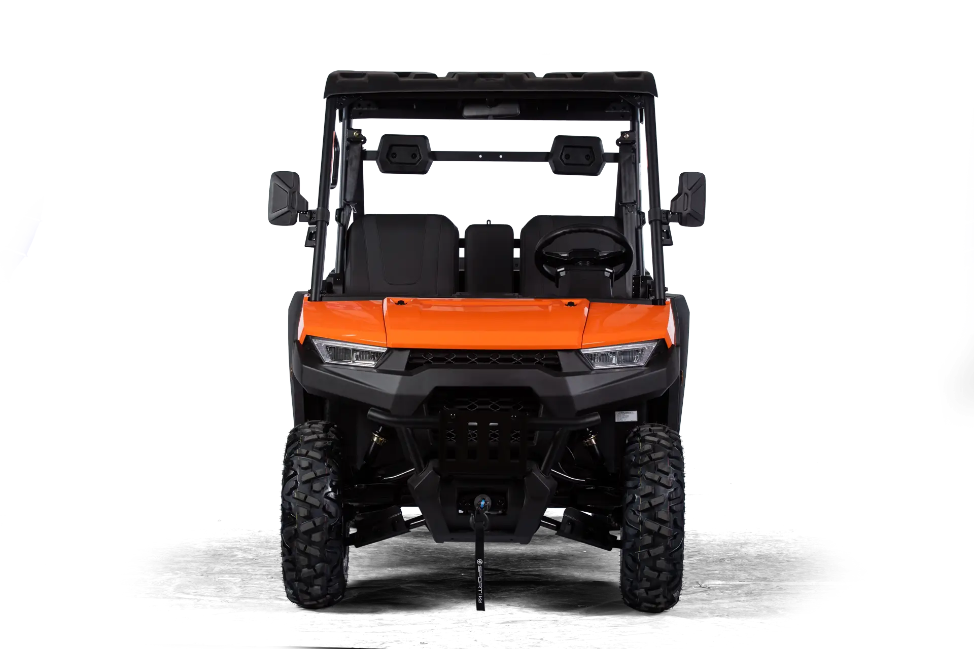Batterie-Pack, Ladekabel, Profi Winde mit Nylonseil (1360 kg) und Fernbedienung, Rückfahrkamera, Kunststoff Halbtür inkl. Innenverkleidung mit Staufächern, Kunststoffdach, 7″ Multifunktions-TFT-Display, Eco- & Sport-Fahrmodus (mit SPORTIVA-Connect** erweiterbar, im Zubehör erhältlich), LED-Frontscheinwerfer und Heckleuchten, Großer Front- und Seiten-Rammschutz, Unterbodenschutz, 3-Punktgurte, Kopfstützen, Beleuchtete Bedienelemente, Staufach am Armaturenbrett, Klappbare Mittellehne mit Cupholder, Anschlüsse jeweils 1x USB-C und 12V, Anhängerkupplung, Rückspiegel, Lenkrad mit Hupe, Elektronisches Gaspedal, Hydraulische Fußbremse ALS ZUBEHÖR ERHÄLTLICH: SPORTIVA-Connect, Straßenbereifung, uvm.