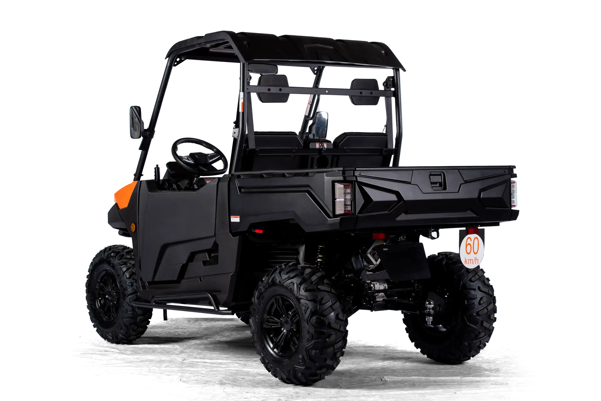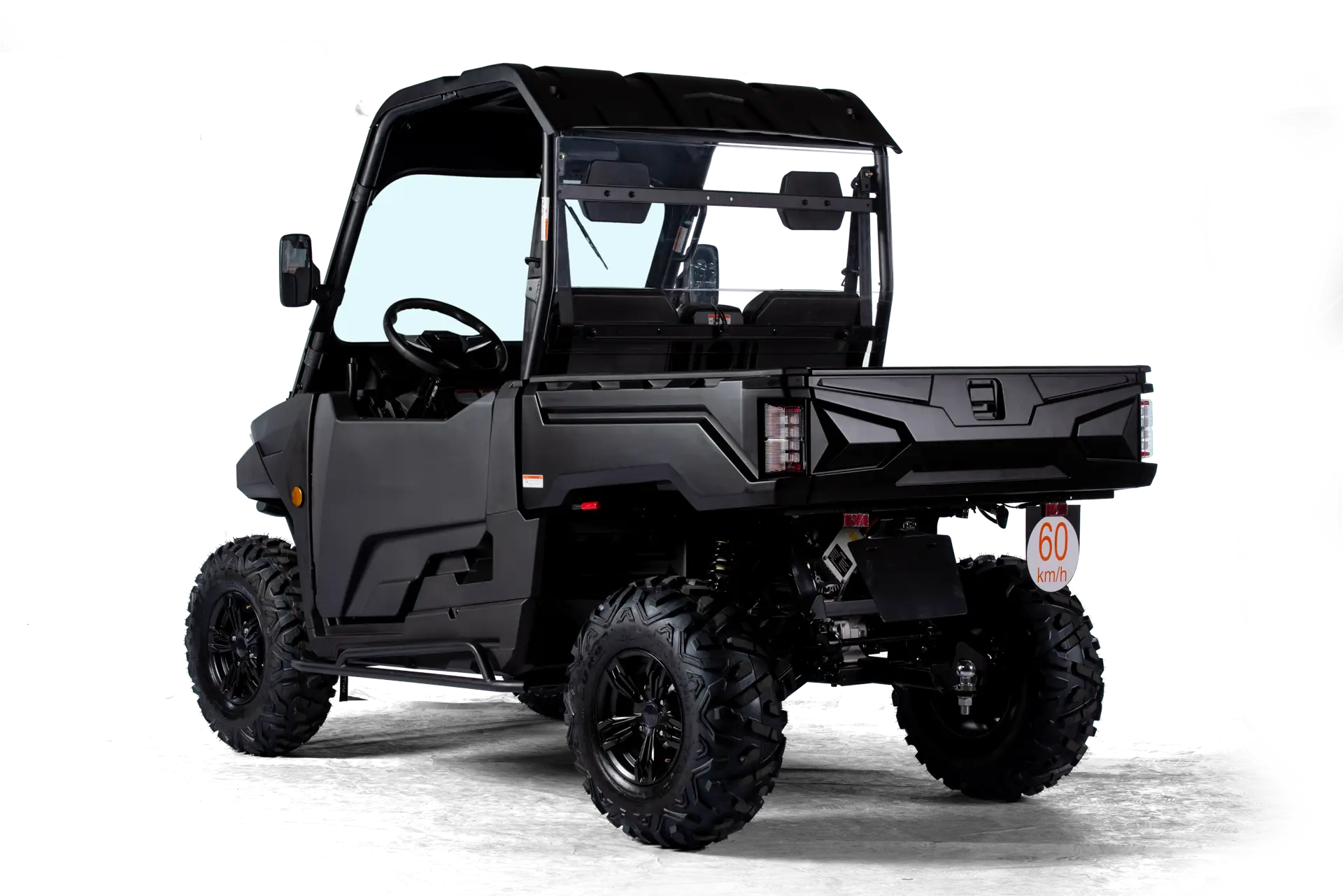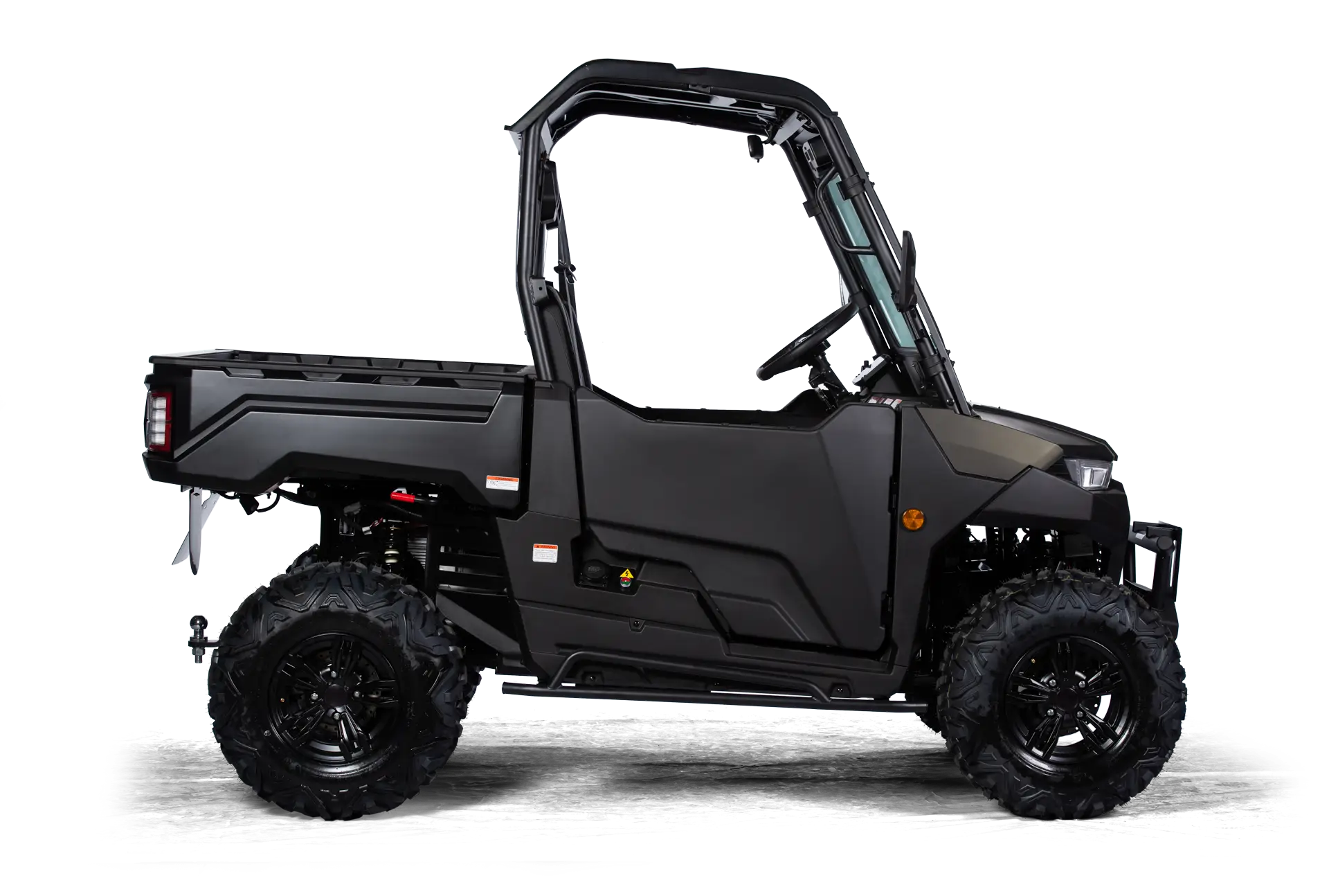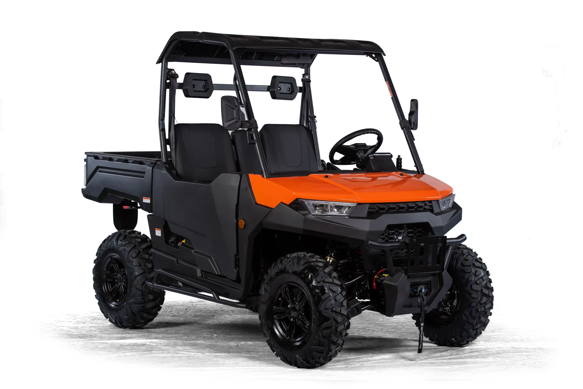 Batterie-Pack, Ladekabel, Profi Winde mit Nylonseil (1360 kg) und Fernbedienung, Rückfahrkamera, Kunststoff Halbtür inkl. Innenverkleidung mit Staufächern, Kunststoffdach, 7″ Multifunktions-TFT-Display, Eco- & Sport-Fahrmodus (mit SPORTIVA-Connect** erweiterbar, im Zubehör erhältlich), LED-Frontscheinwerfer und Heckleuchten, Großer Front- und Seiten-Rammschutz, Unterbodenschutz, 3-Punktgurte, Kopfstützen, Beleuchtete Bedienelemente, Staufach am Armaturenbrett, Klappbare Mittellehne mit Cupholder, Anschlüsse jeweils 1x USB-C und 12V, Anhängerkupplung, Rückspiegel, Lenkrad mit Hupe, Elektronisches Gaspedal, Hydraulische Fußbremse ALS ZUBEHÖR ERHÄLTLICH: SPORTIVA-Connect, Straßenbereifung, uvm.